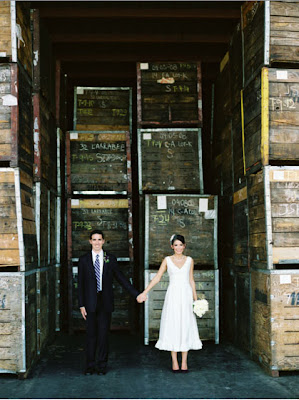 Silk shantung tea length wedding dress with ruffle hem--so dashing and fresh for a sweet, sweet girl. I always jump at the chance to design a short(er) wedding dress, and Holly not only had a vision, she was a dream to work with. These great photos (I love the one below) really capture what a lovely, radiant person she is. Photos by Canlas Photography.