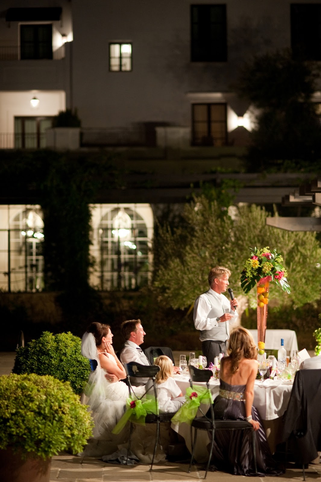 The tables were dressed with very tall flower arrangements filled with lemons and limes sitting in pink water and topped with some fabulous colourful and tropical floral displays and we decorated the chairs with lime sashes and hot pink gerberas which certainly added that party atmosphere to the already beautifully decorated reception.